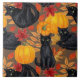 Hand-painted pattern with black cats ,pumpkins and autumn leaves. Mix-media- digital and watercolor painting.