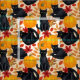 Hand-painted pattern with black cats ,pumpkins and autumn leaves. Mix-media- digital and watercolor painting.