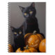 Embrace the spooky season with this enchanting image of two black cats perched beside vibrant pumpkins, including a carved jack-o'-lantern. The cats' piercing yellow eyes and sleek black fur create a striking contrast against the warm orange pumpkins, capturing the essence of Halloween.