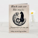 This elegant design captures the enigmatic charm of black cats and the ethereal beauty of music. The centerpiece is a graceful black cat silhouette, poised in serene contemplation. Its sleek form is seamlessly integrated with flowing musical notes and staves, symbolizing the fluid and intangible nature of both music and the feline mystique. Set against a soft, neutral background, the design conveys a sense of calm sophistication. The cat’s posture and the swirl of the musical elements around it create a harmonious blend, suggesting that just like a timeless melody, the allure of a black cat is impossible to quantify but is deeply felt. This design would make for a thoughtful and sophisticated card, perfect for those who understand and appreciate the silent, rhythmic grace of black cats.