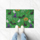 Black Cats Ghosts Bats Green Pattern Halloween Doormat