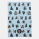 Kitchen dishtowel with black cats design and monogram initial. Cute black kittens and cats cover this towel that is a pale blue colour. Include a single initial over a round, black circle near the bottom. Makes a lovely gift for any cat lover, or black cat owner, man or woman.