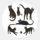 Original fine art design of black cats in different poses by designer Carolyn McFann printed on stickers and cards for cat lovers. It is a great Halloween sticker too.