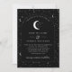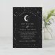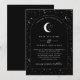 A celestial moon and star themed wedding invitation with a black background and white text with elements. You can also add your own photo on the back. Customise the colour of the star pattern, background, arch fill and moon element!