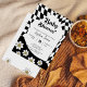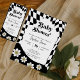 Step into the charm of the '70s with our Black Chequered Girl | Gingham | 70s Baby Shower | Hippie Flower invitations, perfectly capturing the retro boho chic aesthetic. The design features midcentury modern arches, groovy typography, and a delightful black chequered backdrop, evoking the spirit of the '70s era. The black and grey hues add a touch of nostalgia. Inside the oval frame, event details are elegantly presented in a chic and straightforward layout. The introduction, "baby shower" in groovy typography, precedes the parents' names scripted in casual boho handwriting. These invitations are tailor-made for couples' showers, offering flexibility for personalised names.