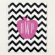 A planner for teachers featuring an illustration of a pink apple over a black and white chevron design. Back side also has chevron pattern. Personalise the monogram.