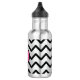 A sleek silver water bottle adorned with a trendy black chevron pattern. Make it uniquely yours! Our water bottle features a vibrant hot pink label that is ready for your personal touch.