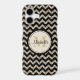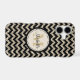 This is an especially pretty case for her, with black chevrons contrasted with silver gold faux glitter chevrons. At the centre is her monogram in gold on a lighter circle banner lined in black. Add her name imposed in black over the monogram, and you have a unique, elegant, and attractive case that is trendy and a bit girly. *Please note - the image is printed on the case, which contains no actual glitter or metallic substance.*