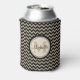 This unique and pretty cooler has black chevrons contrasted with silver gold faux glitter chevrons. At the centre is your monogram in gold on a lighter circle banner lined in black. Add your name imposed in black over the monogram, and you have a unique, elegant, and attractive case that is trendy and eye catching. *Please note - the image is printed on the case, which contains no actual glitter or metallic substance.*