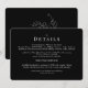Black Chinoiserie Wedding Details Enclosure Card. Two hotels. Shuttle. Cocktails. Wedding website. White text. Elegant. Rounded.