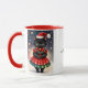 Add a dash of charm to your holiday decor with our ai generated Festive Black Christmas Cat Mug, adorned with a quirky cat in a cute red and green skirt.