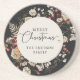 Black Christmas Coaster. Protect your surfaces in style with our Merry Christmas coaster from the Black Boho Botanical Christmas Holiday Card Collection. Featuring stunning watercolor artwork of winter botanicals on a sophisticated black background, these coasters add a festive and elegant touch to your holiday entertaining. They capture the essence of the season while keeping your furniture safe.