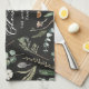 black Christmas minimal elegant botanical Tea Towel