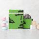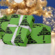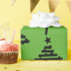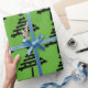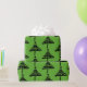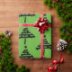 A simple stylish pattern of black Christmas trees on a green background. The design is a simple digital drawing of a Christmas tree with a star on the top.