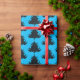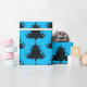 Black Christmas Trees Pattern Blue Wrapping Paper
