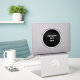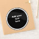 Black circle background with white circle frame ready to personalize. Insert your own personal text.