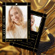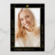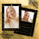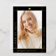 Modern gold foil and black Class of 2025 with photo graduation announcement. This photo Announcement is designed with a sleek and contemporary touch. The combination of black and gold foil creates a modern aesthetic, with the gold foil border elegantly framing the graduate's photo against a black background. The name and other important information are thoughtfully placed outside the frame, ensuring they stand out on the black background with their gold colour. On the back of the announcement, you will find the same stylish border along with another photo and all the essential details about the graduation. The cover has been designed using some assets from Freepik.com