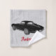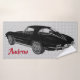 Black Classic Corvette Design Bath Towel Set with customisable text and background colour.