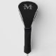 This golf head cover features a black background with a classic light grey monogram and your custom name or other text in white. Easily add your own monogram and name or other text by clicking Personalise this Template.