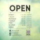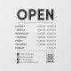 Practical and modern opening hours business decal in black for your store windows or store door with opening hours per day, your phone number, social media and website next to white icons, and a QR code your customers and clients can scan for easy access to your online presence. All text is customisable.