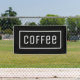 Coffee open sign flag. Simple white on black banner with a white border.