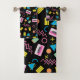 Black Colourful Eighties 80's Retro Pattern Bath Towel Set