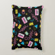 Black Colourful Eighties 80's Retro Pattern Decorative Cushion