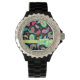 Tell time in style! Add a dramataic watch to your jewellery wardrobe with this whimsy paisley design personalised with your monogram, initials or name. The bold colours of this trendy paisley design pop on a black background with a lime green strip and emblem for personalisation. Bright, fresh, modern paisleys make a beautiful artistic design that includes inspirational words of Love, Hope, Faith, Inspire, Cherish, Be Happy, Dream, and Live in the background between the paisleys. This Mod Paisley collection, designed by Phyllis Dobbs, uses the colours of teal, turquoise, lime green, wine, yellow, fuchsia and orange to create a fun and whimsey take on the traditional and popular paisley motif. The paisley motif is timeless in appeal but this original art is both trendy and contemporary. Fully customisable for personalisation with your own words to add your own message.