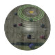 Featured is a black Lawn bowl with a lawn bowls game image inverted over the top.