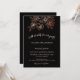 Copper / rose gold line art floral cherry blossoms on a black background. With a Gothic Wedding text: "till death do us part". Dark wedding aesthetic invitation with an elegant handwritten font.