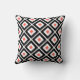 Black, Coral, White Ikat Diamond Pattern Cushion