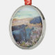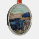 Black cow lying down in heather and gorse on Dartmoor painting Christmas tree ornament