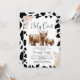 Contrasting black white cow print and brown highland cow baby shower invitation also featuring some pink boho floral arrangements. This holy cow baby shower invitation is a funny way to invite guests to a girl's baby shower.
