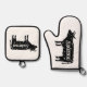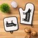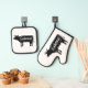 Black cow silhouette personalised Oven Mitt & Pot Holder Set . Vintage design with personalised text. Farm animal design. Kitchen gift idea for chef cook..