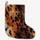 Black Cream Brown Cowhide Gold Monogram Large Christmas Stocking