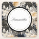 Black Cream Leopard Animal Floral Square Paper Coaster
