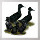 The crest mutation can be put on to any duck breed, like these black Cayugas. The baby ducklings sport adorable little pom poms!