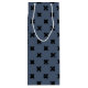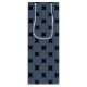 Black cross stitches on blue-gray wine gift bag