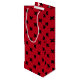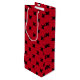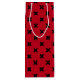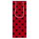 Black cross stitches on red wine gift bag