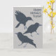 Add your own message to the front and the inside of this greeting card to create the perfect card for any occasion. It's perfect for bird lovers with realistic style illustrations of black crows against a light grey background.