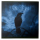Ceramic tile with an image of a black raven at night perched on a tree branch with runes above which says "black raven".