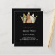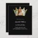 A black background. Personalise and add a name and party details. Add a photo to the crown shaped frame.