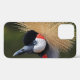 The elegant black crowned crane stands tall and proud, its striking silhouette adorned with intricate patterns of black and white feathers. Its blue eyes gleam with intelligence, reflecting its keen awareness. The crane's presence is a symbol of beauty and harmony in the natural world.