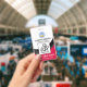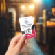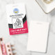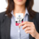 Black curvature waves accentuate a red cover at the base of the badge. Towards the top, in a white layer, lie an optional global heartbeat logo for you to use. Just below the logo are your prestigious name and job title. A photo template follows suit, for you to upload photos up to a size of 1,000 x 1,000 pix. Near the base, is a caption "CAN I HELP YOU?", change this to suit your service needs. The organisation name comes next below the caption.
