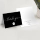Personalise this simple and easy to use thank you folded card template with your company's logo, message, name, and social media handles. Let your clients, customers, patrons know you are grateful for their support during these uncertain times. Featuring a printed modern customisable text "thank you" script with long-tailed embellishments on black (tip: use the white version of your logo as a PNG on a transparent background).