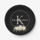 Black Custom Name Monogram White Roses Paper Plate