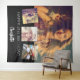 A tapestry for a 21st (or any age) birthday party. A black background. Personalise and add 4 high quality photos of the birthday girl. The text: The name in white with a modern hand lettered style script. Tempates for a name, age. Can be used as wall decor for the party or as a photo booth backdrop.