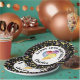 Celebrate a milestone birthday in style with this stunningly unique and elegant black paper plate, perfect for a 10th birthday party! The plate features an all-over pattern of confetti paint splatters against a solemn black background, bringing an artistic touch to the celebration. In the centre, a hand-painted watercolor illustration of five colourful balloons adds a burst of joy, encircled by a crisp white ring. The design includes a fully customisable "Happy 10th Birthday" message that curves gracefully around the inner ring, and you can personalise it even further by adding your birthday child’s name below the balloons. Available in both square and round shapes, these plates are easily personalised using the Zazzle editor—replace the confetti, balloons, and background to make the design uniquely your own. Whether you prefer the original design or a completely custom look, these plates will be a memorable touch to your birthday celebration! Perfect for a modern, chic birthday party.