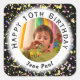 Black Customisable Watercolor Confetti Birthday Square Sticker