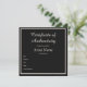Black Customizable Certificate of Authenticity Card